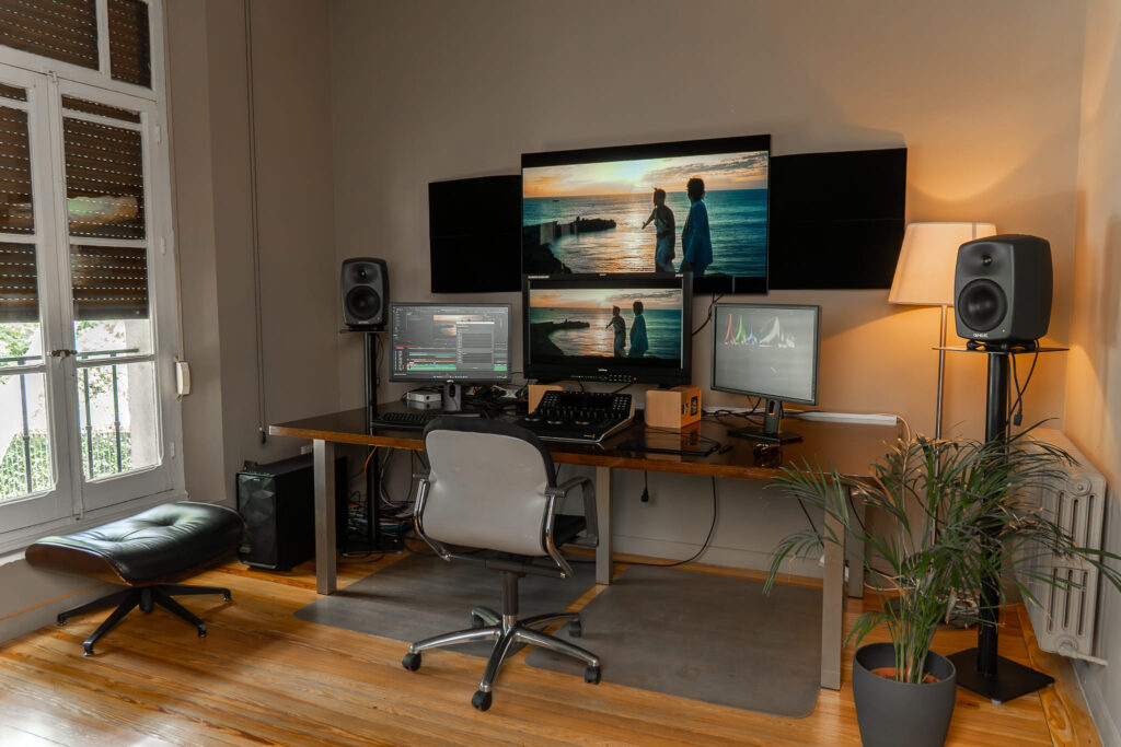 - Sala de masterización con Transkoder para TV, broadcast, plataformas de medios y másters DCP para cine