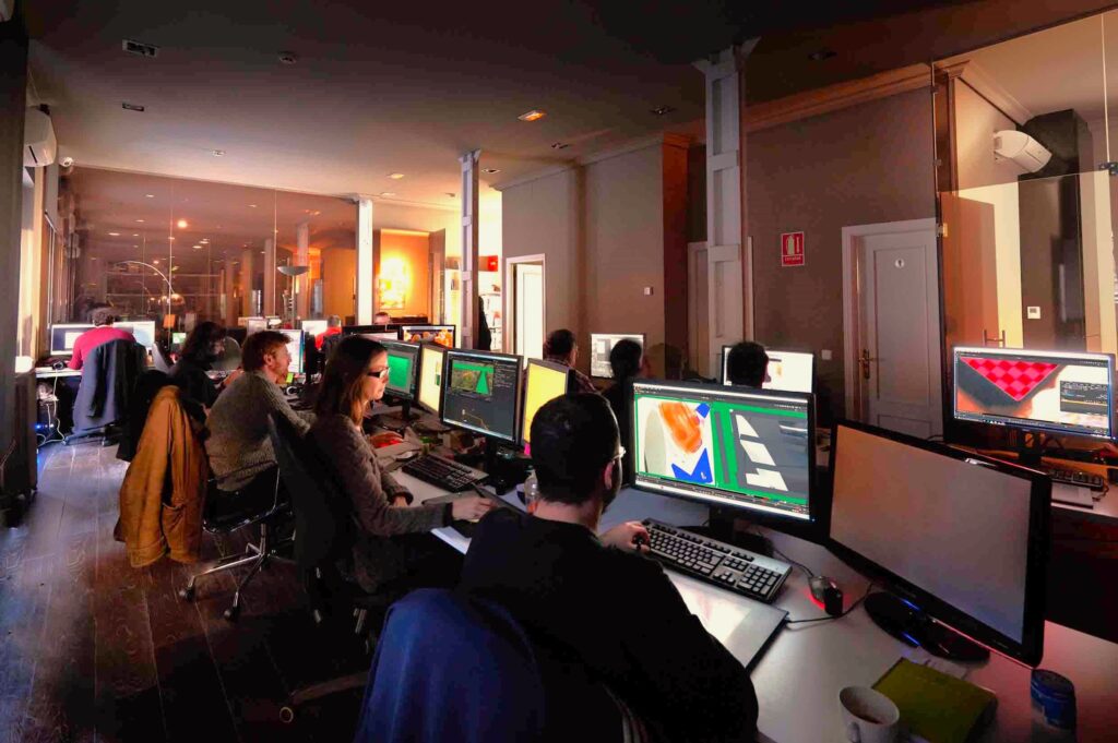 - 5 estaciones de trabajo con Adobe Creative Cloud (After Effects, Photoshop, etc.) y Cinema 4D para motion graphics y diseño gráfico